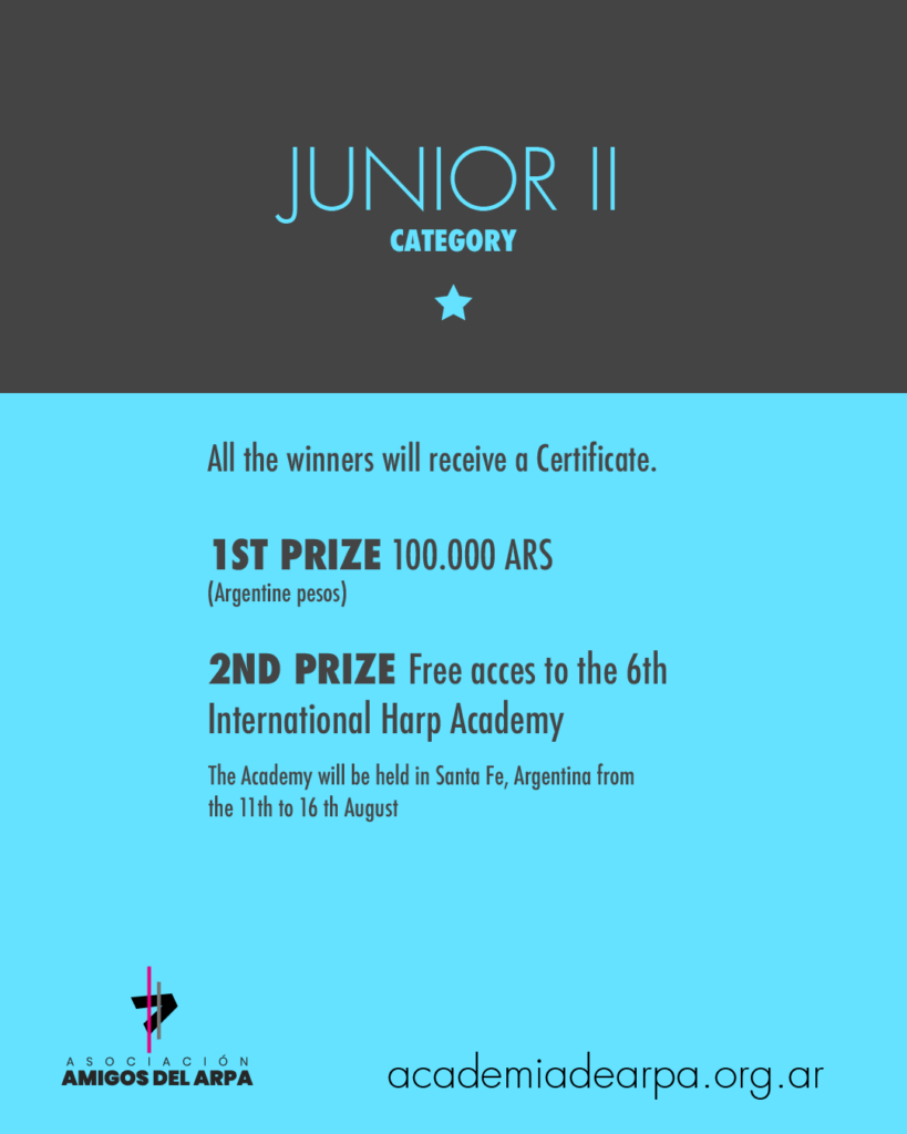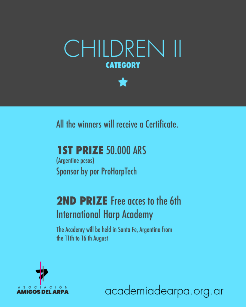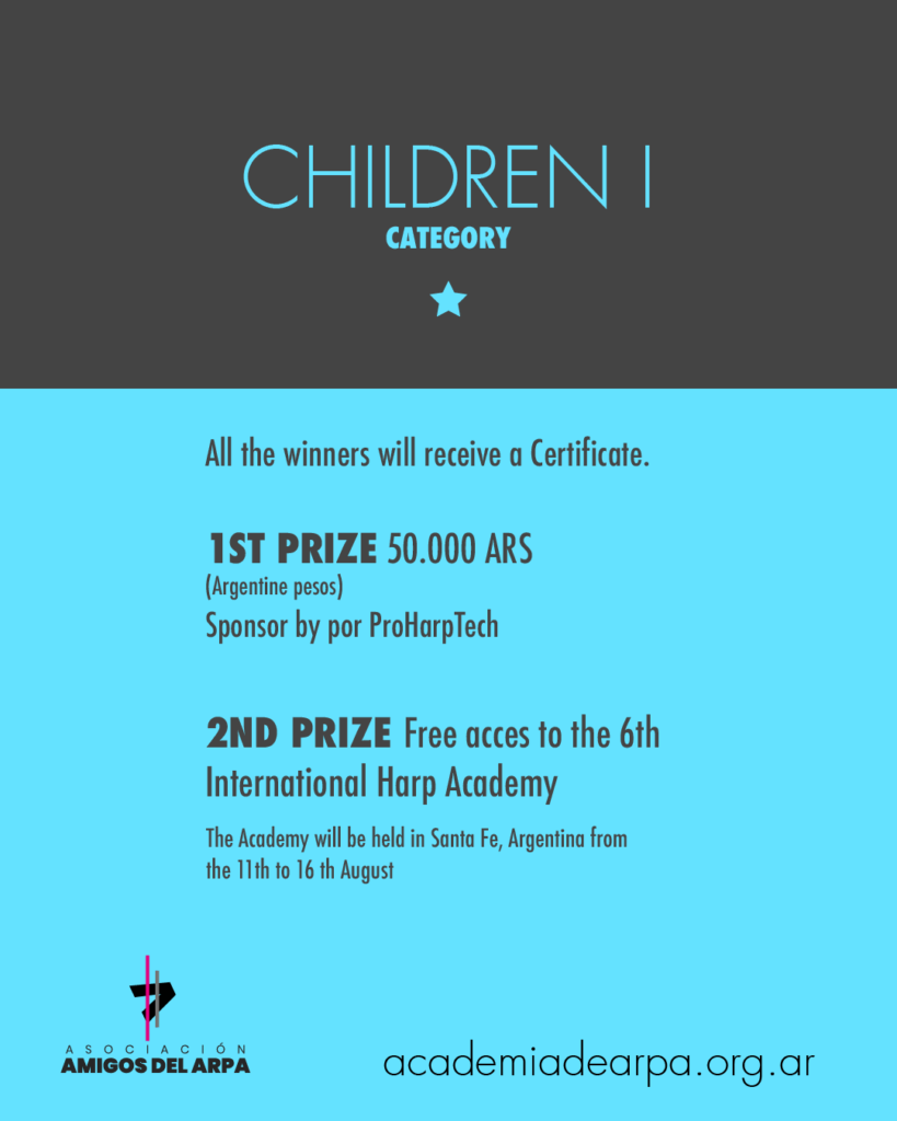 The repertoire of each category must be performed by memory and without repeats. Participation with levers or pedal harps is allowed in the Children’s Categories.